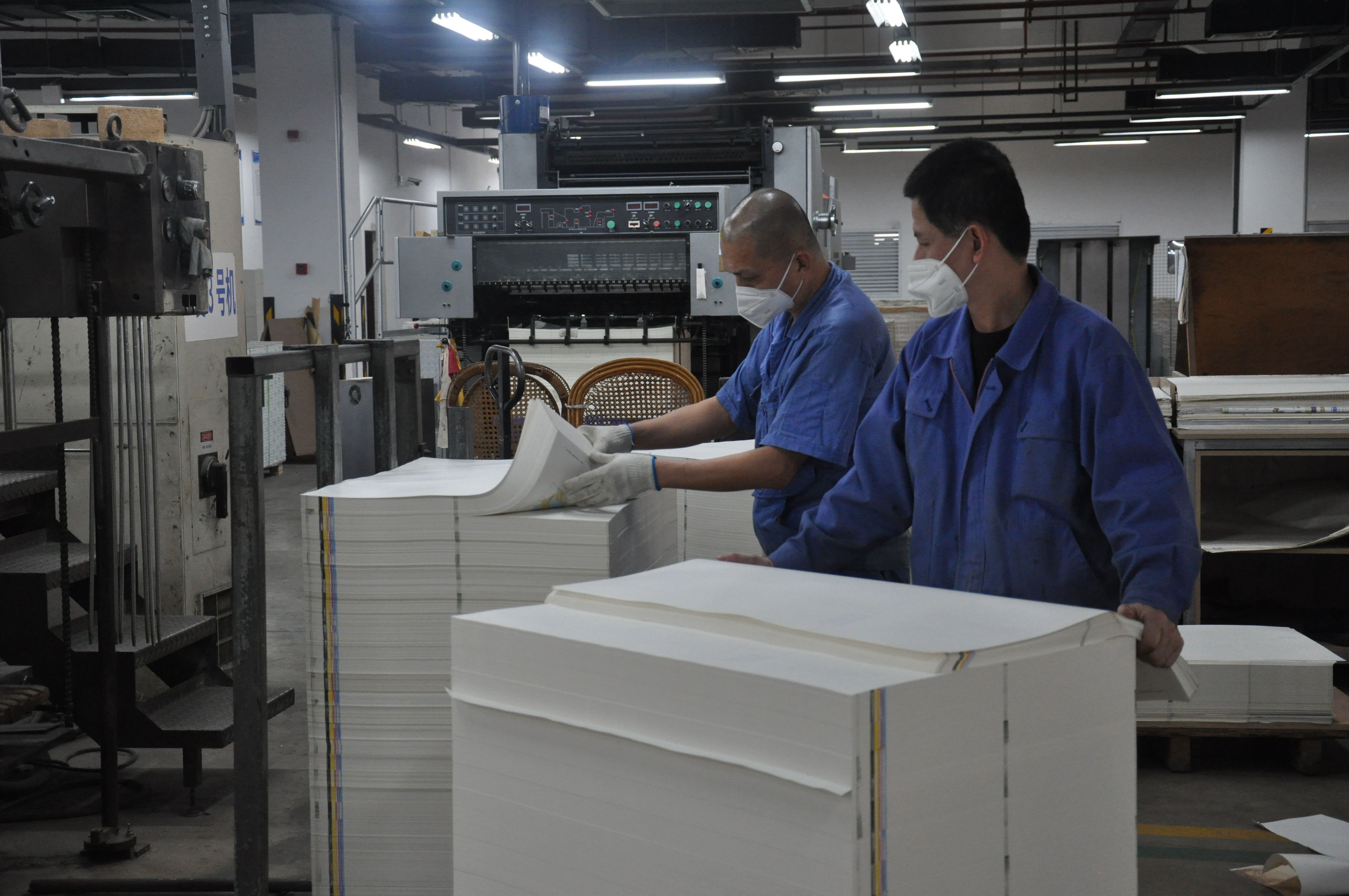 印務(wu)集團(tuan)在付(fu)印時(shi)間遲(chi)、印制(zhi)周期(qi)短、人(ren)員用(yong)工緊(jin)、疫情(qing)防控(kong)進入(ru)新階(jie)段的(de)情況(kuang)下,第(di)一時(shi)間動(dong)員部(bu)署教(jiao)材印(yin)制工(gong)作,生(sheng)産街(jie)接、質(zhi)量控(kong)制、人(ren)員保(bao)障、物(wu)資供(gong)應、後(hou)勤服(fu)務等(deng)各部(bu)門協(xie)同發(fa)力,确(que)保集(ji)團規(gui)模化(hua)協同(tong)生産(chan)優勢(shi)的高(gao)效發(fa)揮。集(ji)團春(chun)節期(qi)間倡(chang)議全(quan)體員(yuan)工“以(yi)愛爲(wei)家、奉(feng)獻在(zai)崗”, 設(she)備24小(xiao)時不(bu)停歇(xie)高速(su)運轉(zhuan),工人(ren)們“兩(liang)班倒(dao)”不停(ting)工,開(kai)足馬(ma)力、滿(man)負荷(he)運行(hang),晝夜(ye)兼程(cheng),争分(fen)奪秒(miao),深挖(wa)潛、奪(duo)高産(chan)、抓質(zhi)量、搶(qiang)周期(qi),以實(shi)際行(hang)動踐(jian)行國(guo)有企(qi)業的(de)責任(ren)擔當(dang)。