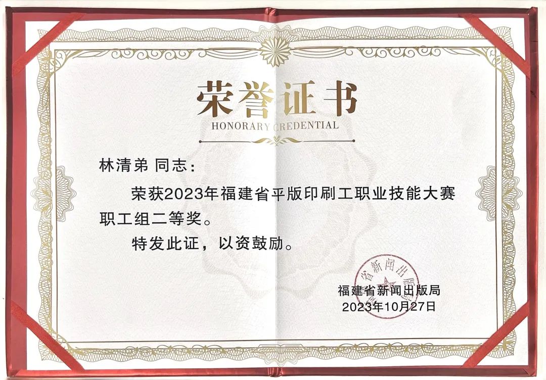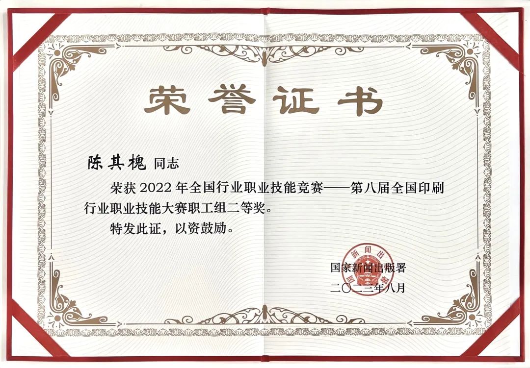 ›•• 近日(ri),“第八屆(jie)全國印(yin)刷行業(ye)職業技(ji)能大賽(sai)”、“2023年全省(sheng)平版印(yin)刷工職(zhi)業技能(neng)大賽”以(yi)及“2023年度(du)福建省(sheng)包裝印(yin)刷産品(pin)質量對(dui)比👩🏼❤️👨🏾交流(liu)活動金(jin)銀銅”獎(jiang)項的頒(ban)獎典禮(li)在廈門(men)舉行。由(you)印務集(ji)團承印(yin)的《琴硯(yan)收藏》《福(fu)建畫報(bao)2023第🧑🏽❤️💋🧑🏻四期(qi)第3帖》《學(xue)畫寶典(dian)👋-淩霄花(hua)》分💌别榮(rong)獲福🥑️建(jian)省包裝(zhuang)印💘刷産(chan)品金獎(jiang)、銀獎、銅(tong)獎。印務(wu)集團印(yin)後加工(gong)中心陳(chen)其槐、李(li)波榮獲(huo)第八屆(jie)中國印(yin)刷行業(ye)職業技(ji)能大賽(sai)第二名(ming),印務集(ji)團精😈品(pin)印刷中(zhong)心林清(qing)弟榮獲(huo)2023年全省(sheng)平版印(yin)刷工職(zhi)業技能(neng)大賽二(er)等獎。